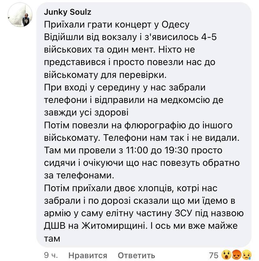 В Одессе прямо возле железнодорожного вокзала сотрудники военкомата задержали киевских музыкантов из группы "Junket".