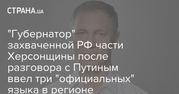 Назначенный Россией "губернатор" Владимир Сальдо своим "указом" ввел на захваченной территории Херсонской области использование трех "официальных" языков: русского, украинского и крымскотатарского. Это произошло после его разговора с президентом РФ Владимиром Путиным.