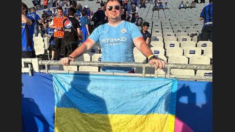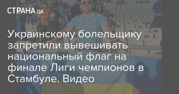 В турецком Стамбуле на финале Лиги чемпионов, в котором "Манчестер Сити" оформил чемпионство после победы над "Интером", украинец вывесил желто-синий флаг, но работники стадиона его сняли и унесли.