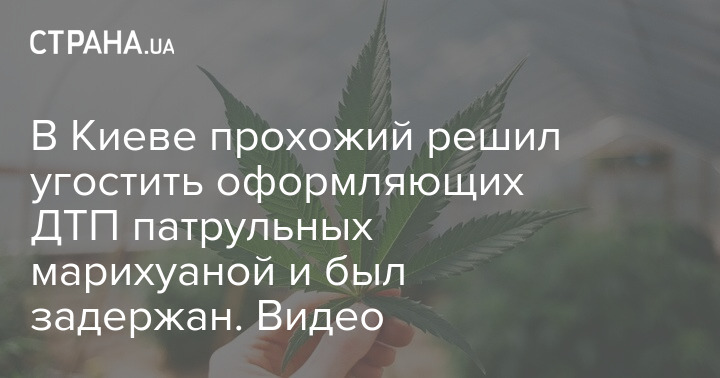 В Киеве прохожий решил угостить оформляющих ДТП патрульных марихуаной и был задержан. Видео