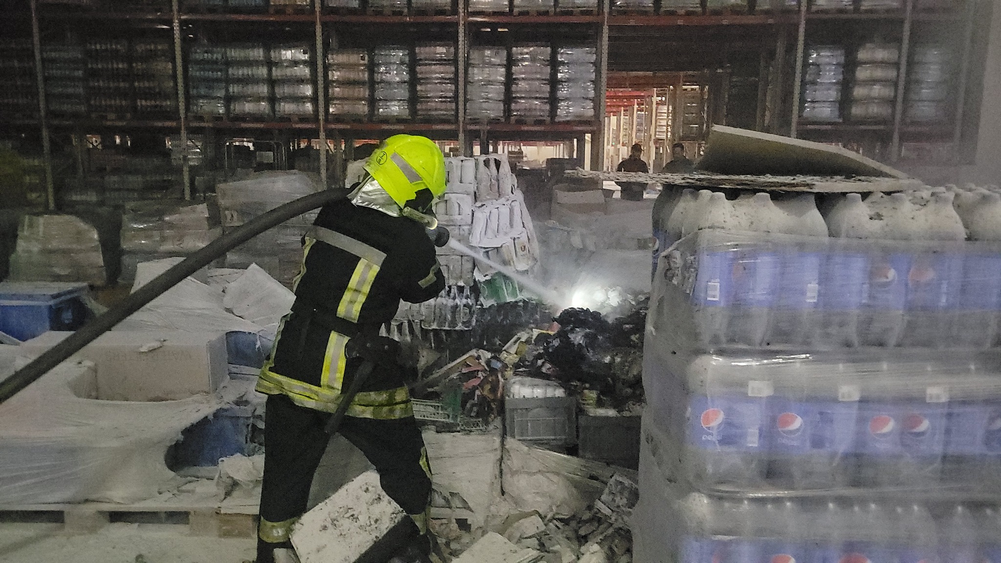 После попадания ракеты в складское помещение одной из торговых сетей произошло разрушение на площади 1000 кв.м и пожар на площади 400 кв. м. Три сотрудника склада погибли, семь получили ранения.