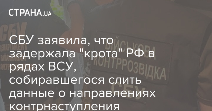 Служба безопасности Украины задержала российского "крота" в рядах ВСУ, который, по данным следствия, планировал передать РФ информацию о направлениях украинского контрнаступления.