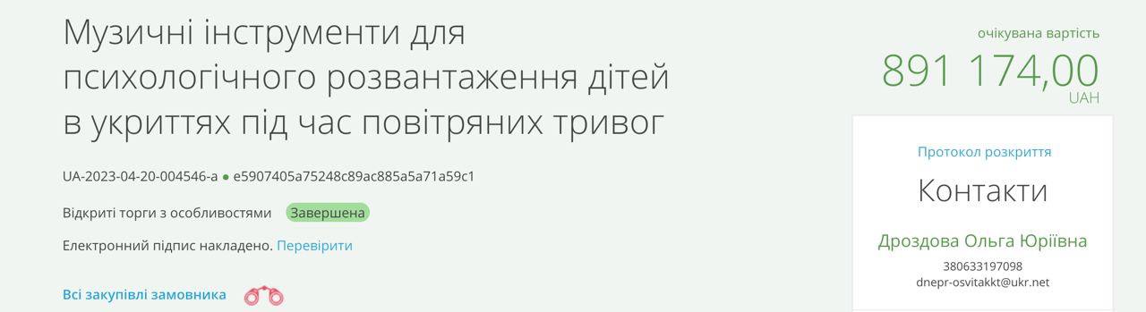 Закупку провело управление образования Днепровской районной администрации. Как указано в данных тендера, "для психологической разгрузки детей в укрытиях во время воздушных тревог".