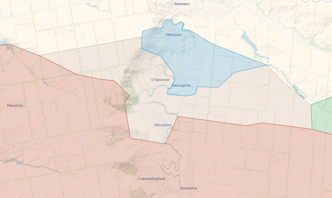 Также, по данным РФ, боестолкновения идут у захваченного Россией села Урожайного на том же участке. Все указанные названия звучали и вчера, поэтому, судя по всему, крупных прорывов по-прежнему нет.