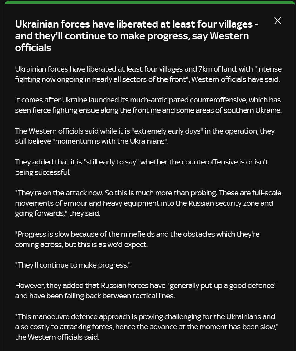 "Это не похоже на Харьков. Мы должны быть осторожны. Русские учились и готовились, и их оборонительные линии грозны — у нас нет ни людей, ни оборудования. Прогресс должен быть постепенным", - заявил он.