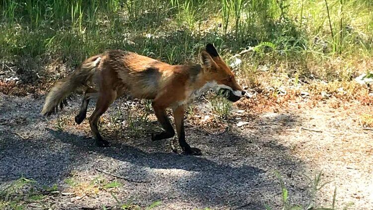 Намышковала. Чернобыльский заповедник опубликовал фото лисы с добычей в зубах