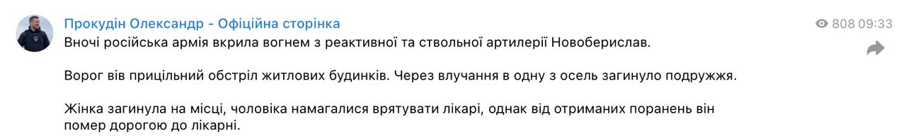 Из реактивной и ствольной артиллерии ночью обстреляли Новоберислав, сообщает губернатор.