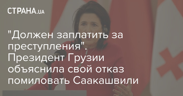 Президент Грузии Саломе Зурабишвили отказывается помиловать Михаила Саакашвили из-за того, что грузинский народ считает, что Саакашвили должен заплатить за преступления, которые были совершены во время его руководства страной.