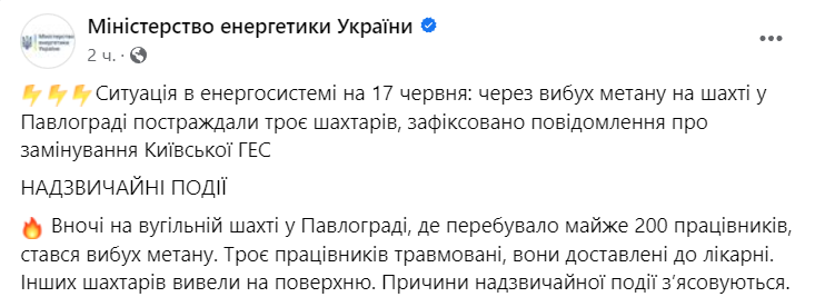 Ночью на угольной шахте в Павлограде, где находились почти 200 работников, произошел взрыв метана.