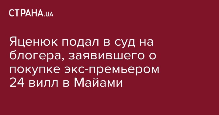 Яценюк подал в суд на блогера, заявившего о покупке экс-премьером 24 вилл в Майами