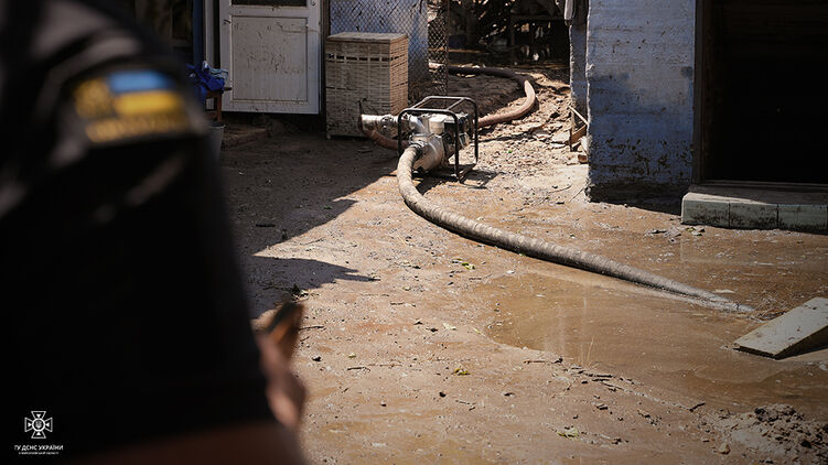 Откачивание воды с территории частного дома. Фото - facebook.com/MNS.GOV.UA/