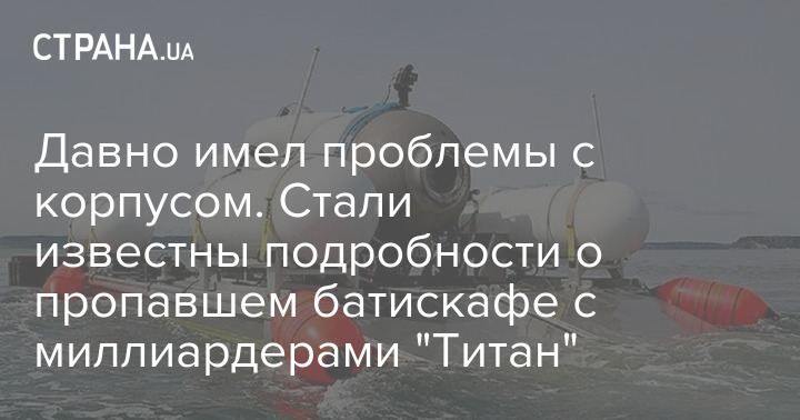 Агентство Associated Press сообщает, что сотрудник компании-организатора этих туристических погружений еще в 2018 году предупреждал начальство, что "Титан", билет на который стоит около 250 тыс. долл., нуждается в дополнительных испытаниях. Да и сам основатель OceanGat Стоктон Раш, находящийся сейчас на борту, говорил в 2020 году, что корпус аппарата демонстрировал признаки циклической усталости, из-за чего была снижена максимальная глубина погружения.