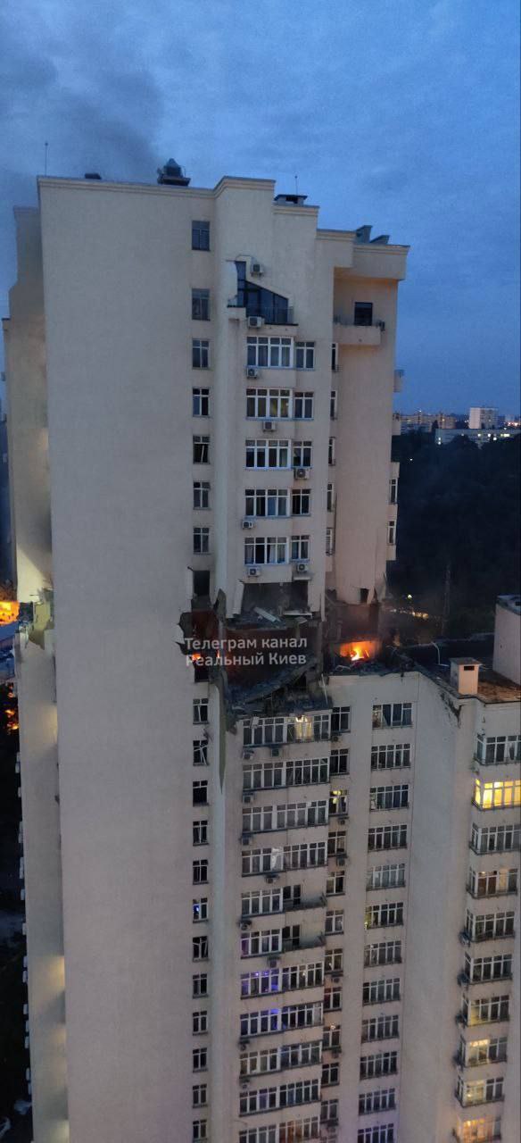 В Киеве в результате массированной ракетной атаки РФ в Соломенском районе столицы 24 июня в 3:18 утра обломки ракеты попали в 24-этажное здание. По предварительным данным, осколки также попали в автомобильную стоянку.