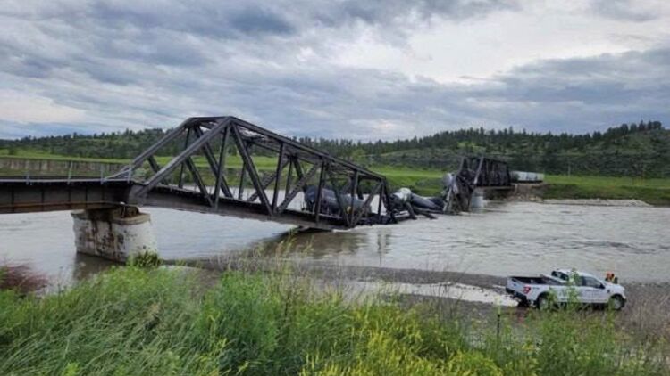 В американском штате Монтана в результате обрушения моста упали в реку Йеллоустоун несколько вагонов поезда, перевозившего опасные вещества.