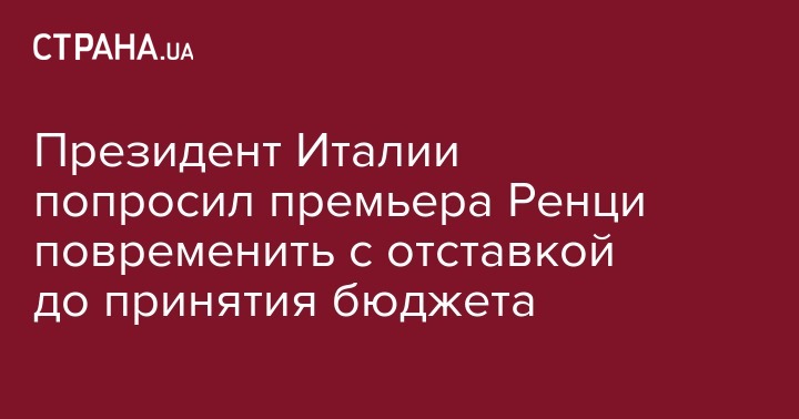 Президент Италии Серджо Маттарелла попросил премьер-министра страны Маттео Ренци отложить отставку до принятия парламентом государственного бюджета страны на 2017 год. Об этом сообщает Reuters.