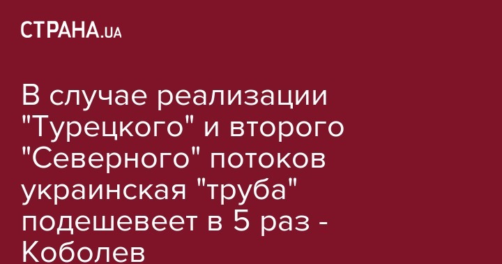 В случае реализации "Турецкого" и второго "Северного" потоков украинская "труба" подешевеет в 5 раз - Коболев