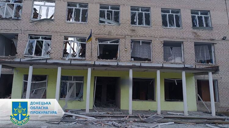 Последствия обстрела школы в донецком селе. Фото: Донецкой облпрокуратуры