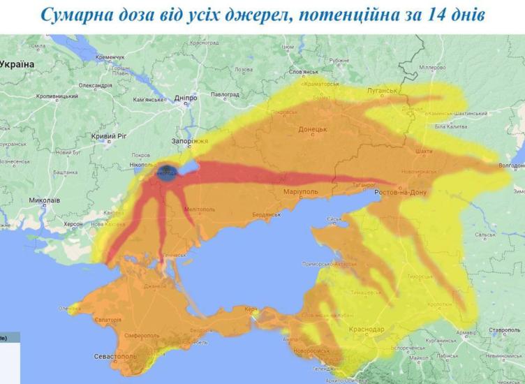 Еще в августе 2022 года украинская компания "Энергоатом" публиковала карту зоны поражения в случае взрыва на АЭС: она охватывала Крым и Ростовскую область. А также Мариуполь и другие захваченные территории Донбасса, Запорожской и Херсонской областей (то есть весь сухопутный коридор в Крым, который является для РФ стратегически важной транспортной артерией).