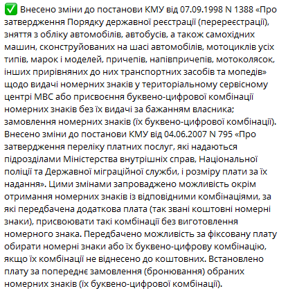 Кабмин разрешил автовладельцам выбирать номера при регистрации автомобиля за фиксированную плату (300 грн.), если их комбинации не отнесены к ценным.