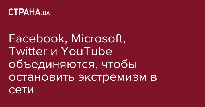 Крупнейшие интернет-компании, Facebook, Microsoft, Twitter и YouTube - договорились о сотрудничестве с целью остановить распространение экстремистских картинок и видеоматериалов через свои сайты. Об этом сообщает ВВС.
