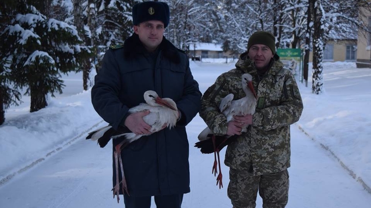 "На полигоне Учебного центра военнослужащие Госпогранслужбы заметили в снегу двух аистов, которым не хватило сил улететь в теплые края. Птицы были слабыми, но людей не боялись. Пограничники забрали их к Учебному заведению, чтобы спасти от холода и голода. Там они прожили несколько дней, аппетит имели хороший и охотно шли на контакт. Но пора прощаться, ведь птицы должны быть в руках специалистов. Поэтому сегодня они переданы на временное место проживание — в Черкасский зоопарк. Сотрудники зоопарка поблагодарили всех неравнодушных, которые не проходят мимо раненых животных и пытаются их спасти", - написали пограничники.