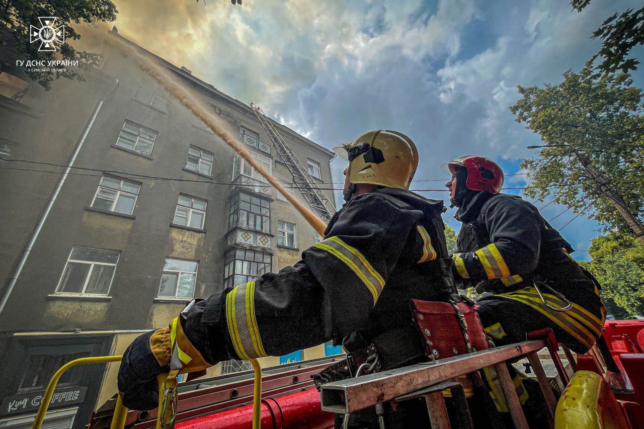 14.55 Фото с места прилета "Шахеда" в пятиэтажку в центре Сум.