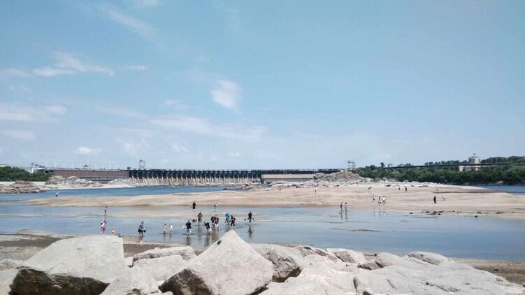 На севере Запорожья Днепр обмелел до полуметра, его можно перейти вброд. Фото