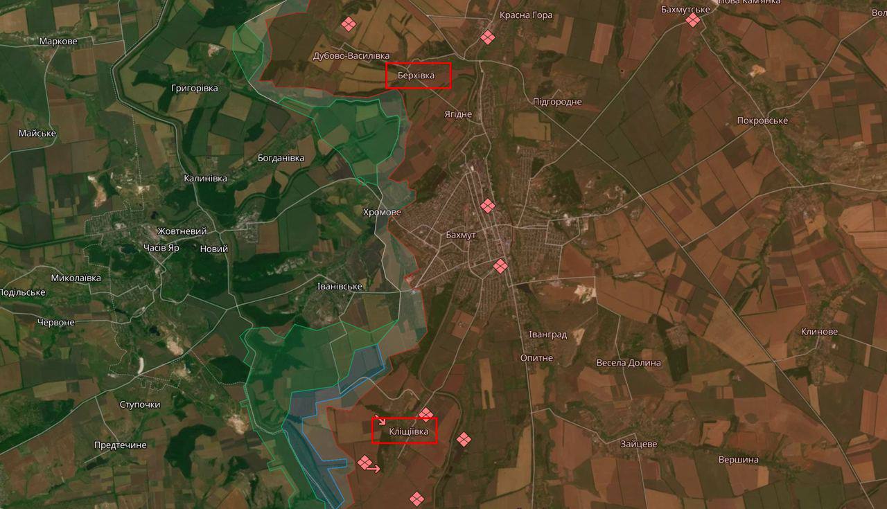 "Топчемся на месте под Берховкой и Клещеевкой, все слишком тяжело, резервы бросают п***ы (россияне) снова", - сообщает телеграм-канал "Бахмутский Демон".
