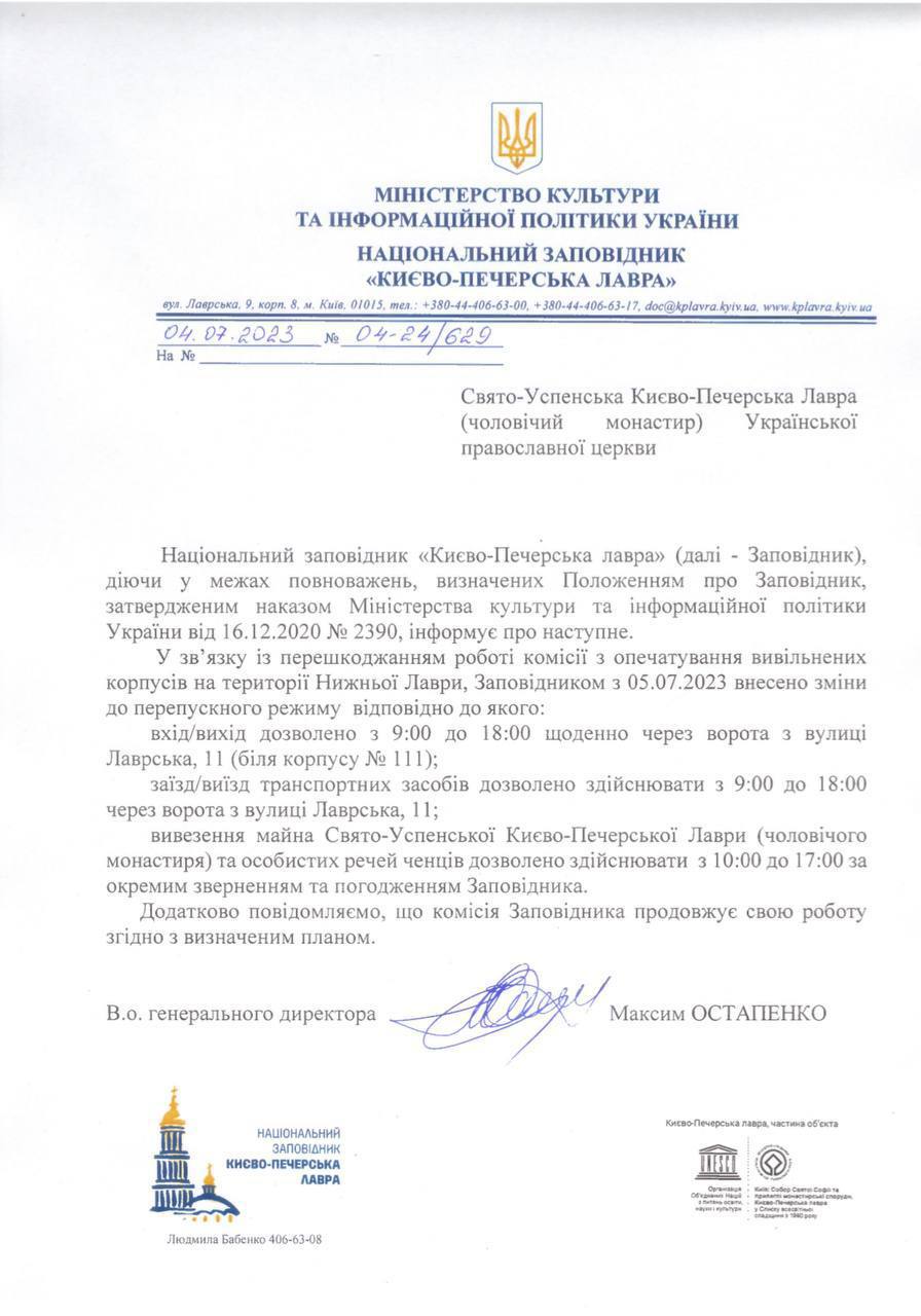 В Украинской православной церкви прокомментировали "Стране" решение Минкульта об ограничении доступа на территорию монастыря.
