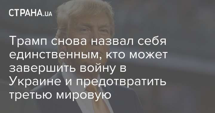 Экс-президент США Дональд Трамп снова назвал себя единственным, кто может предотвратить третью мировую войну и завершить боевые действия в Украине.