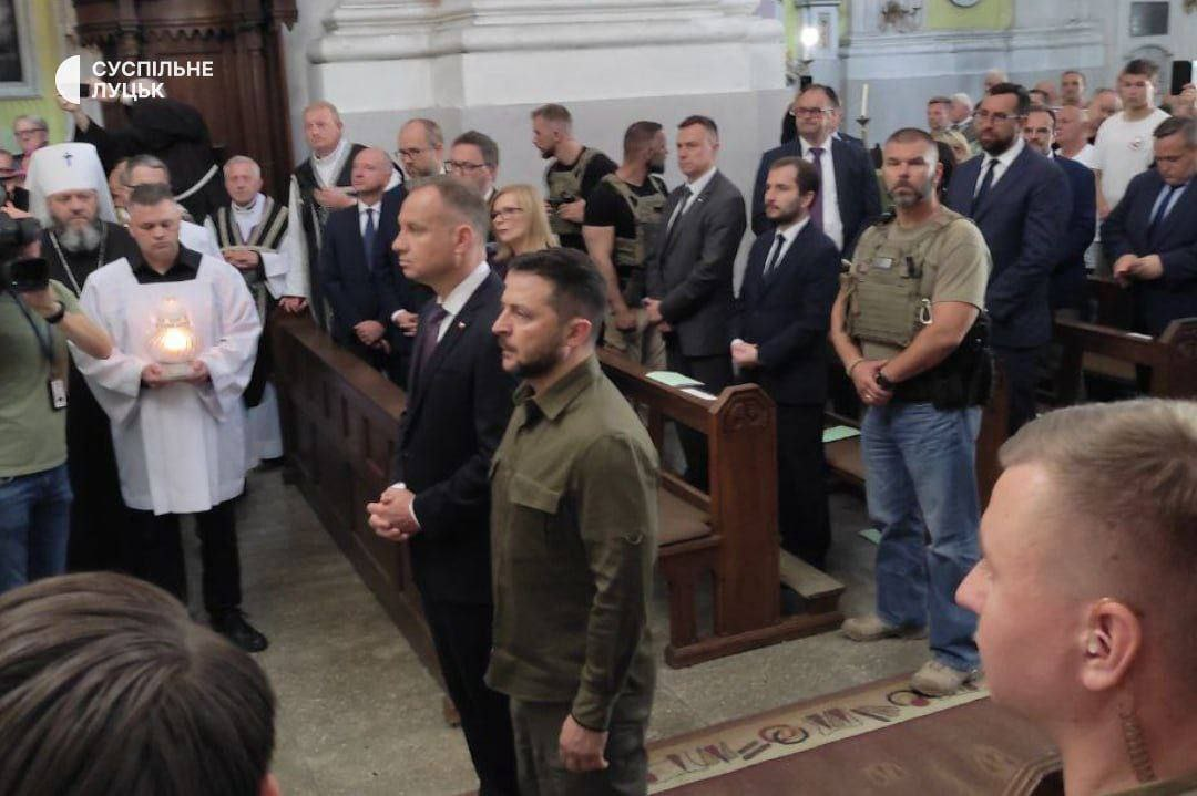 Визит глав двух государств в Луцке заранее не был анонсирован. При этом, как пишет "Суспільне", накануне вечером в горсовете сообщили, что движение транспорта на улицах Старого города, где расположен костел, будет перекрыто в связи с проведением мероприятий по оказанию почестей памяти жертв Второй мировой войны и 80-й годовщине Волынской трагедии.