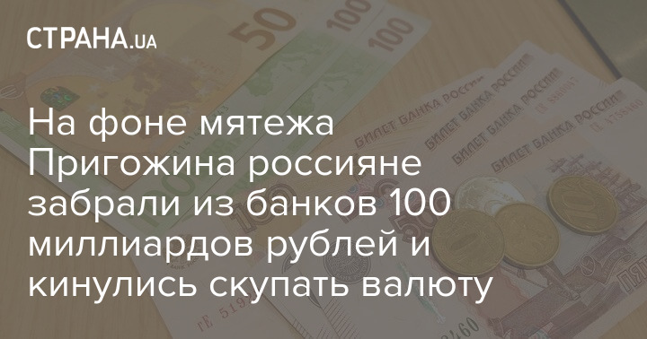 На фоне мятежа Пригожина россияне забрали из банков 100 миллиардов рублей и кинулись скупать валюту