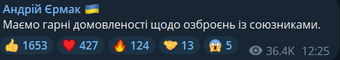 Ранее Зеленский встретился с канцлером ФРГ Шольцем и премьером Канады Трюдо. Глава ОП Андрей Ермак пишет, что по итогам встреч "есть хорошие договоренности по вооружениям".