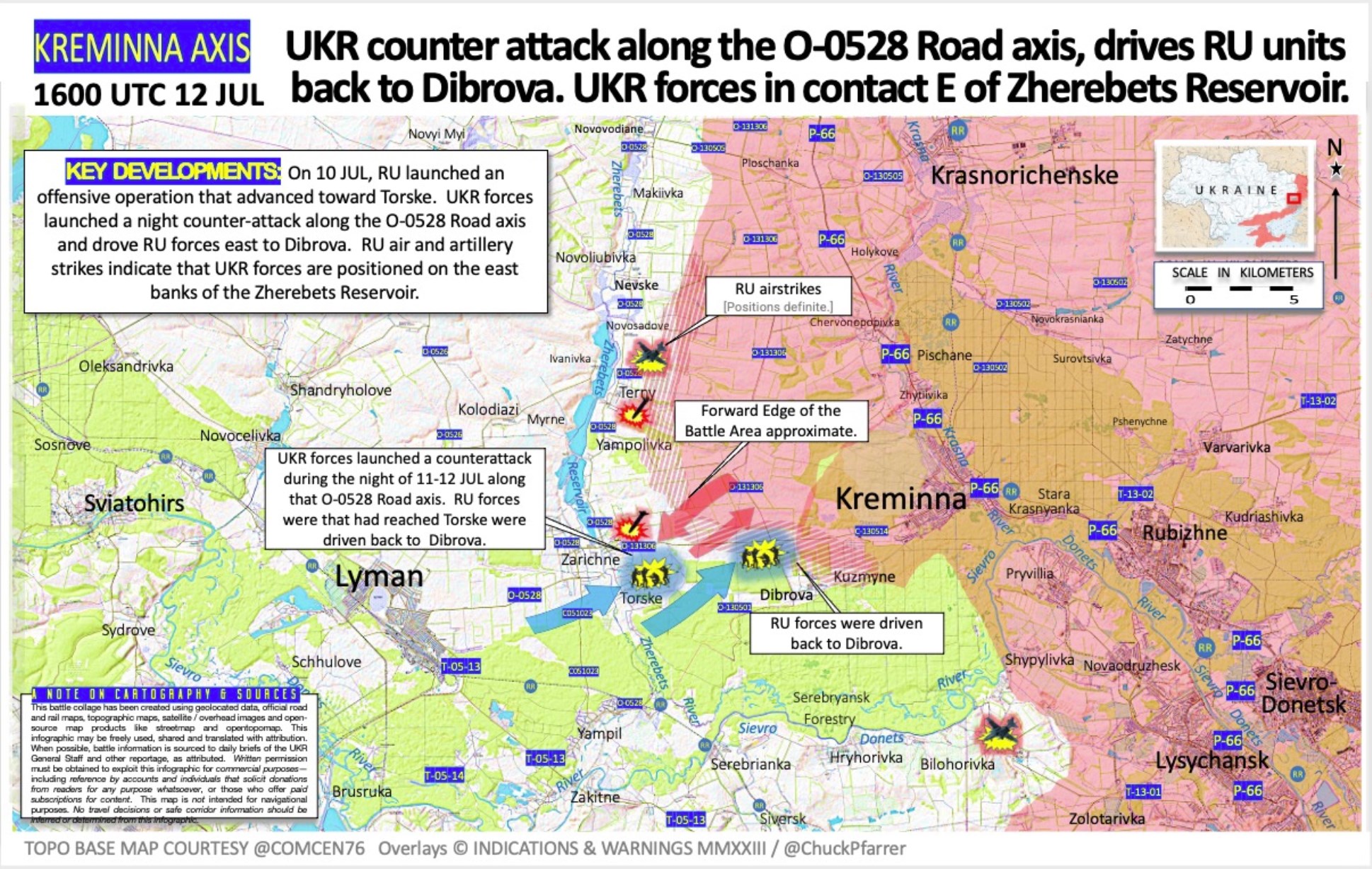 На Лиманском направлении бои продолжаются на восточных окраинах Торского, о чем сообщалось и вчера. Украина этого не подтверждала.