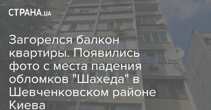 Загорелся балкон квартиры. Появились фото с места падения обломков "Шахеда" в Шевченковском районе Киева