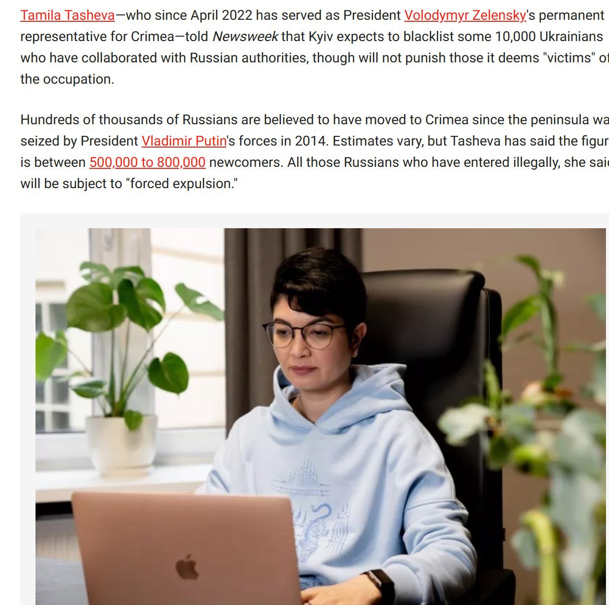 Об этом заявила изданию Newsweek представитель Владимира Зеленского по Крыму Тамила Ташева.