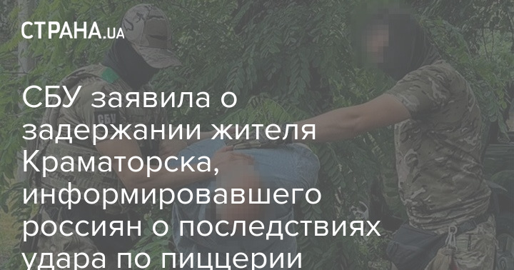 Служба безопасности Украины задержала жителя Краматорска, который, по версии спецслужбы, информировал ФСБ о последствиях российского удара по кафе в Краматорске 27 июня, где погибли 13 человек.