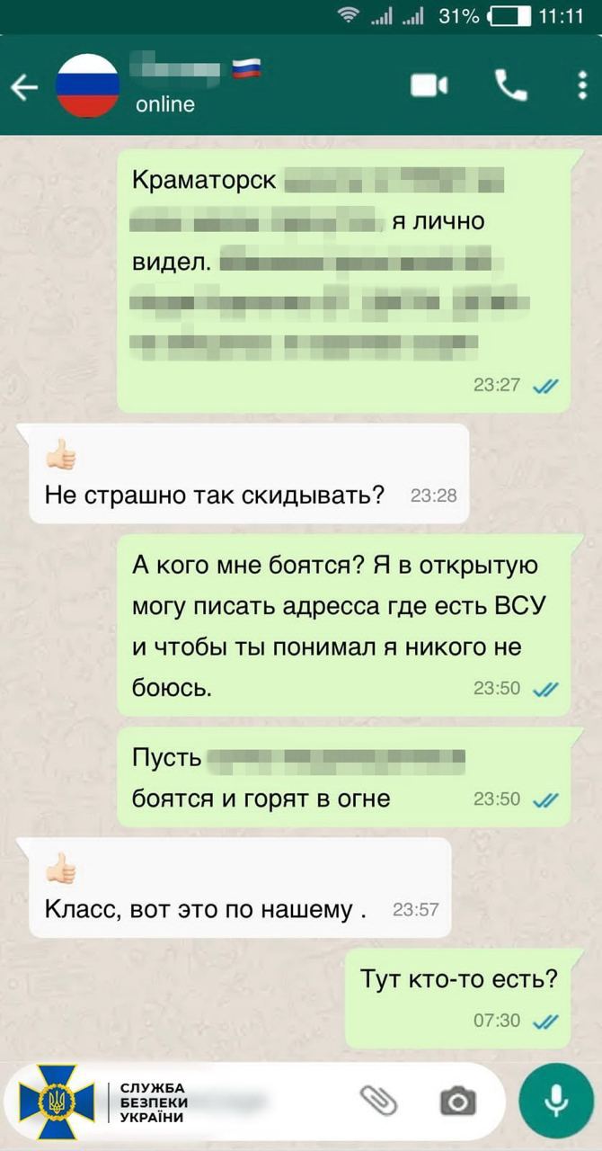 Как сообщается, подозреваемого задержали во время выполнения нового задания ФСБ в Краматорске. Им, по данным спецслужбы, оказался местный житель, который попал в поле зрения РФ из-за своих антиукраинских комментариев в разных телеграм-каналах.