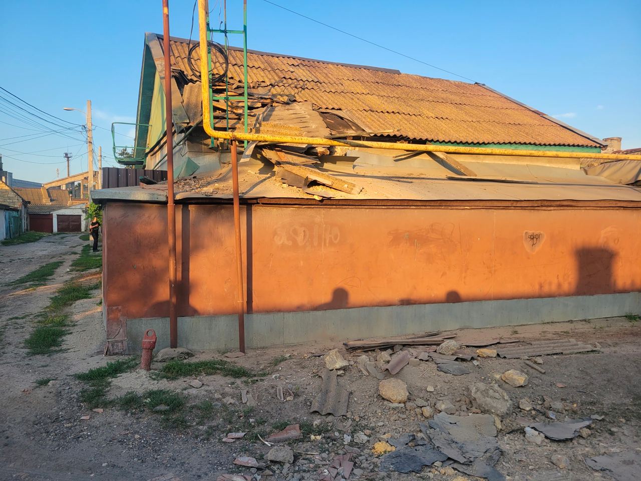 Обломками и взрывной волной повреждены объекты портовой инфраструктуры и несколько частных домовладений. Ранен пожилой мужчина.