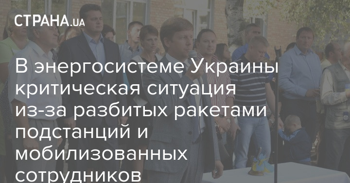 В энергосистеме Украины сложилась сверхсложная ситуация. Более 26 подстанций частично уничтожены ракетными ударами россиян, а в штате предприятий образовался дефицит кадров из-за мобилизации.