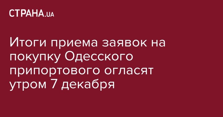 Как сообщала "Страна", вслед за этим, все остальные участники конкурса также сняли свои заявки на торги. Об этом "Стране" заявил первый заместитель директора ПАО "Одесский припортовый завод" Николай Щуриков.