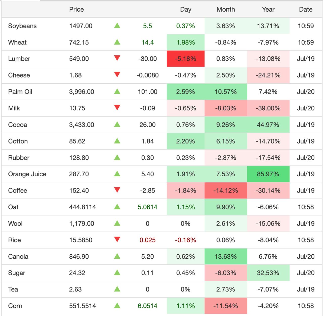 Наиболее активные контракты на пшеницу на Чикагской товарной бирже (CBOT) выросли до 7,39 доллара за бушель. Рынок достиг своего максимума с 27 июня.