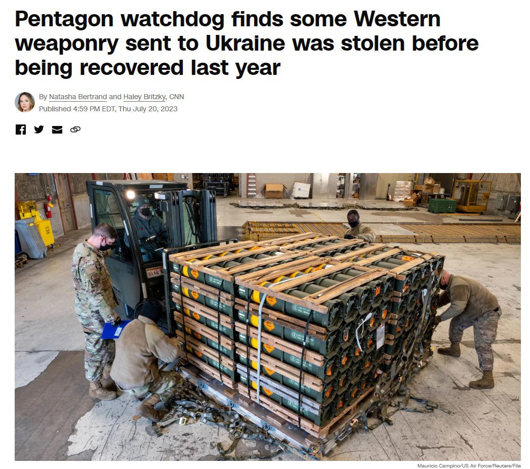 8:30 Часть западного оружия, отправленного в Украину, была украдена, говорится в отчете Пентагона, на который ссылается CNN. Но украинские спецслужбы разоблачили каналы воровства, добавляют журналисты.