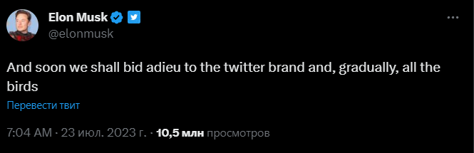 "Скоро мы попрощаемся с брендом Twitter и постепенно, со всеми птичками", - написал Маск.