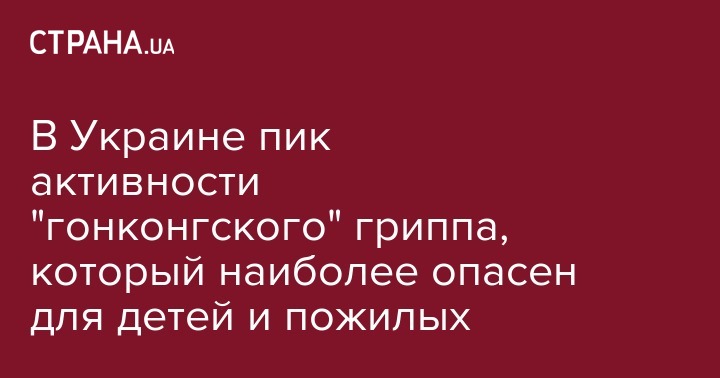 В Украине пик активности "гонконгского" гриппа, который наиболее опасен для детей и пожилых