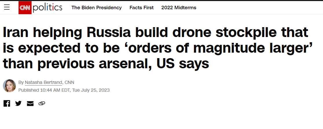В Разведывательном управлении США считают, что всего Иран пока что передал России более 400 беспилотников Shahed-131/136 и Mohajer, этот запас уже почти полностью иссяк.