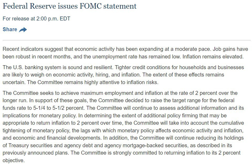 ФРС США повысила учетную ставку до 5,5%. Это самый высокий уровень за 22 года