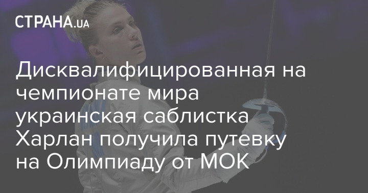 Дисквалифицированная на чемпионате мира украинская саблистка Харлан получила путевку на Олимпиаду от МОК