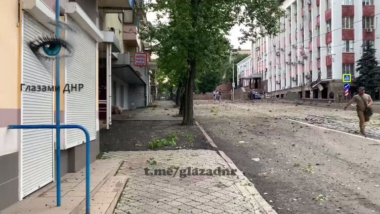 Появилось видео момента прилёта в здание "МВД ДНР" в Донецке.
