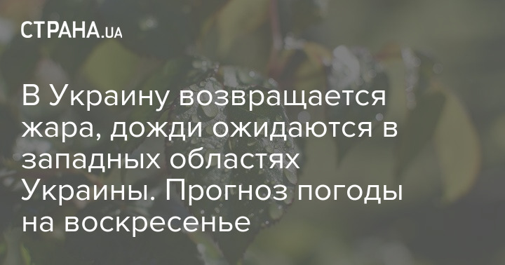В воскресенье, 30 июля, дождь пройдет в западных областях Украины, днем осадки прогнозируют в Винницкой, Житомирской областях, вечером дойдут осадки и до Киевской области.